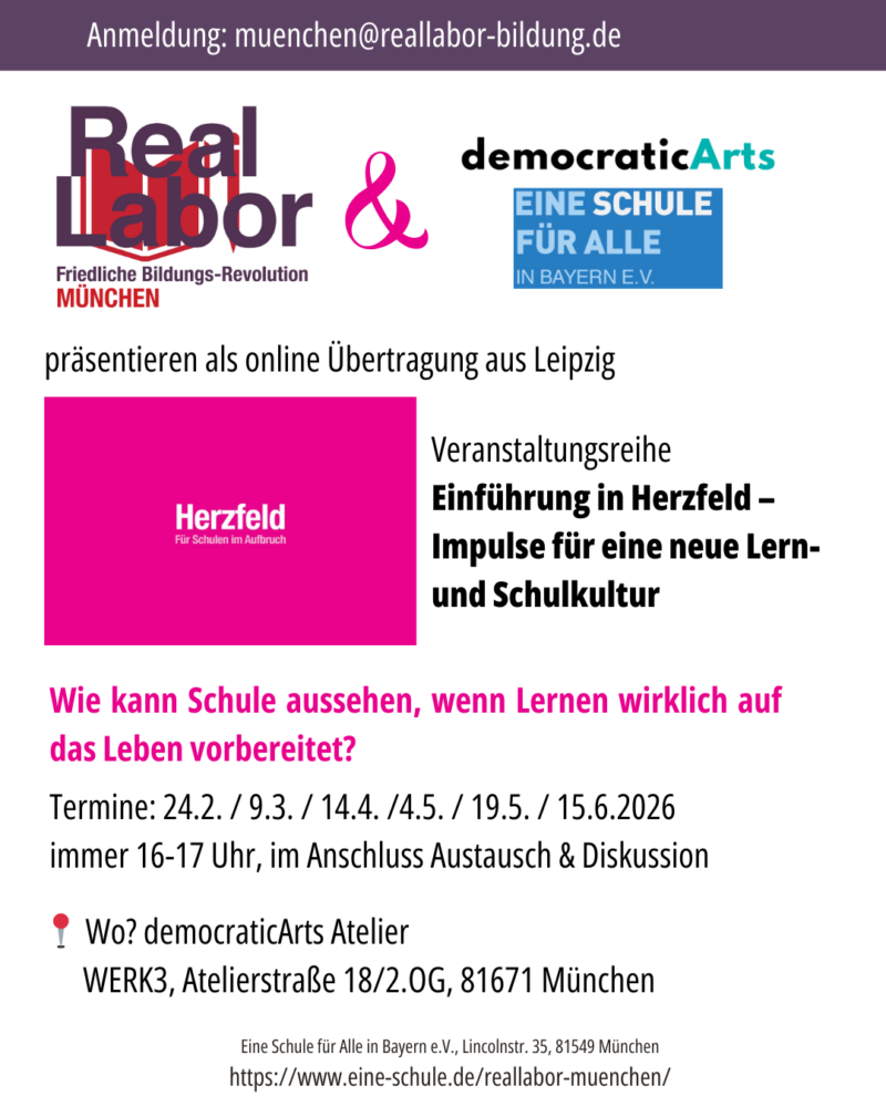 Die Herzfeld-Reihe zeigt Lernformate, die Schulen entlang der vier UNESCO-Säulen des Lernens weiterentwickeln: Wissen erwerben, handeln, zusammenleben und sein. Projektbasiertes Lernen, Verantwortung übernehmen und Lernen durch Engagement stehen im Mittelpunkt.